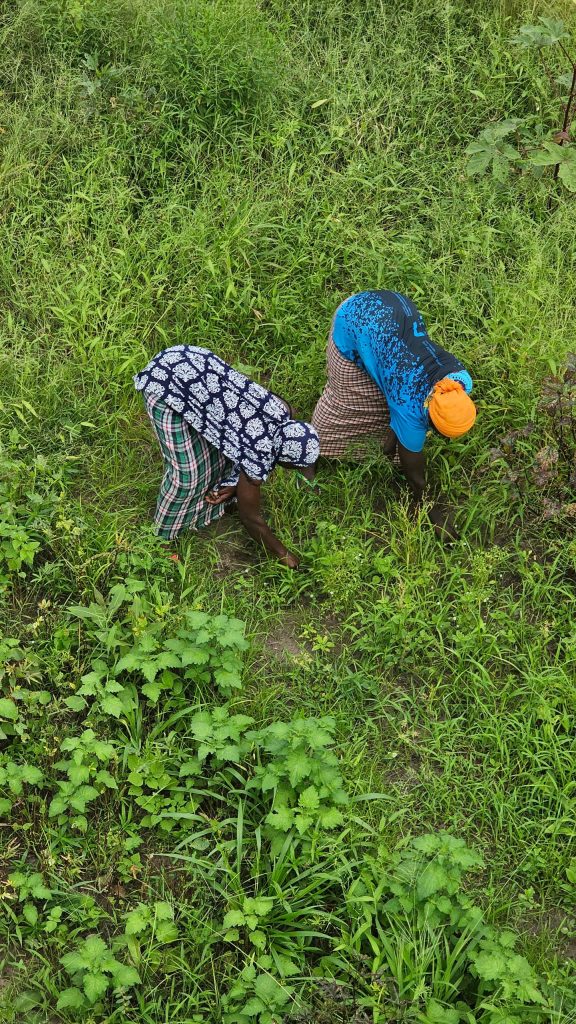”Herään kello seitsemältä ja valmistan ensin puuron lapsilleni aamupalaksi ennen kuin lähden kasvimaalle. Kello kahdeksaan mennessä aamiainen on valmis, ja tuntia myöhemmin suuntaan kasvimaalle viljelemään sipulia, tomaatteja, okraa, chiliä, paprikaa, etiopianmunakoisoja ja munakoisoja puoleenpäivään asti. Sen jälkeen palaan kotiin tekemään lounasta perheelle.
