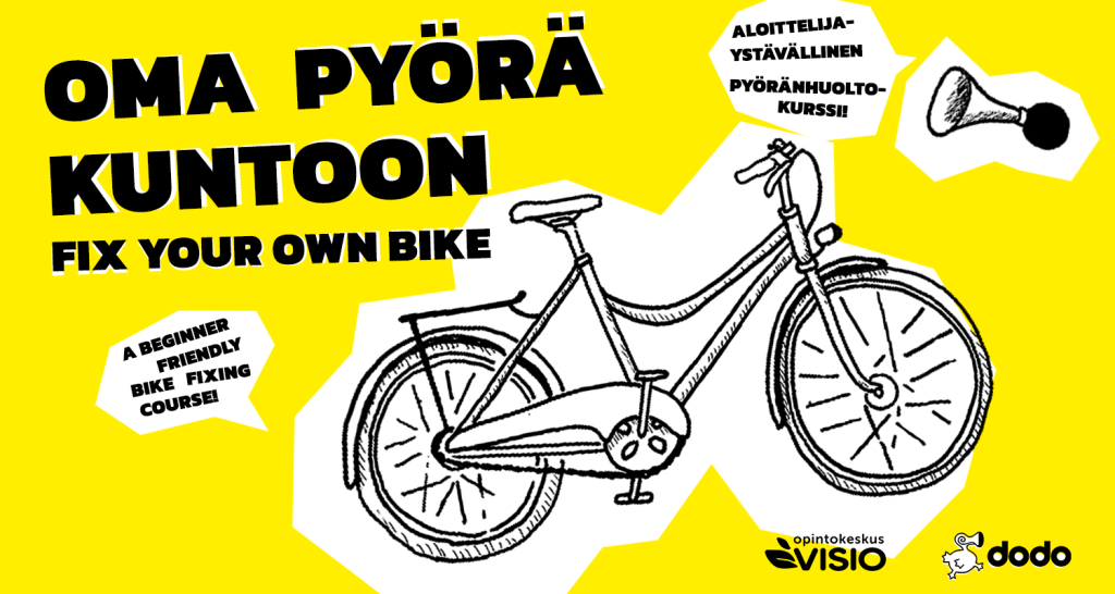 Neljästä sessiosta koostuvan Oma pyörä kuntoon-pyöränkorjauskurssin aikana tutustutaan polkupyörän perusmekaniikkaan ja siihen, miten pitää omasta pyörästä huolta miltei nollabudjetilla. Kurssi pyrkii luomaan hyvän pohjan oman pyörän vikojen tunnistamiselle ja niiden korjaamiselle kotioloissa. Kurssi on suunniteltu niin, ettei osallistuminen vaadi aiempaa kokemusta pyörän huollosta, pyrkien tarjoamaan hauskan ja helpostilähestyttävän paketin tietoa, uutta osaamista ja itsevarmuutta, joiden avulla opit pitämään oman pyöräsi pyörät pyörimässä!
